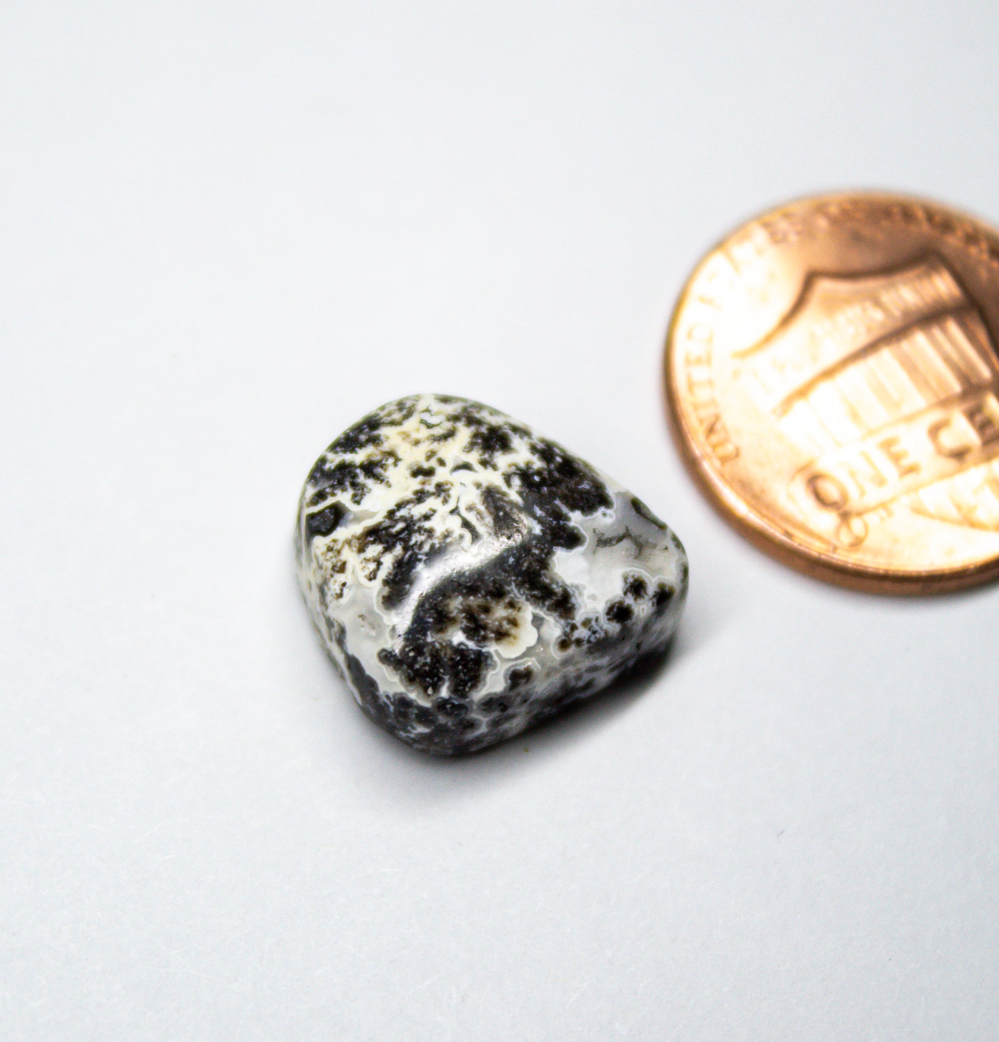Black dendritic agate is found in New Mexico, and is known for its unique, organic inclusions formed by manganese or iron deposits. This cabochon is a fun choice for collectors or jewelry artists looking to incorporate nature-inspired designs into their creations.