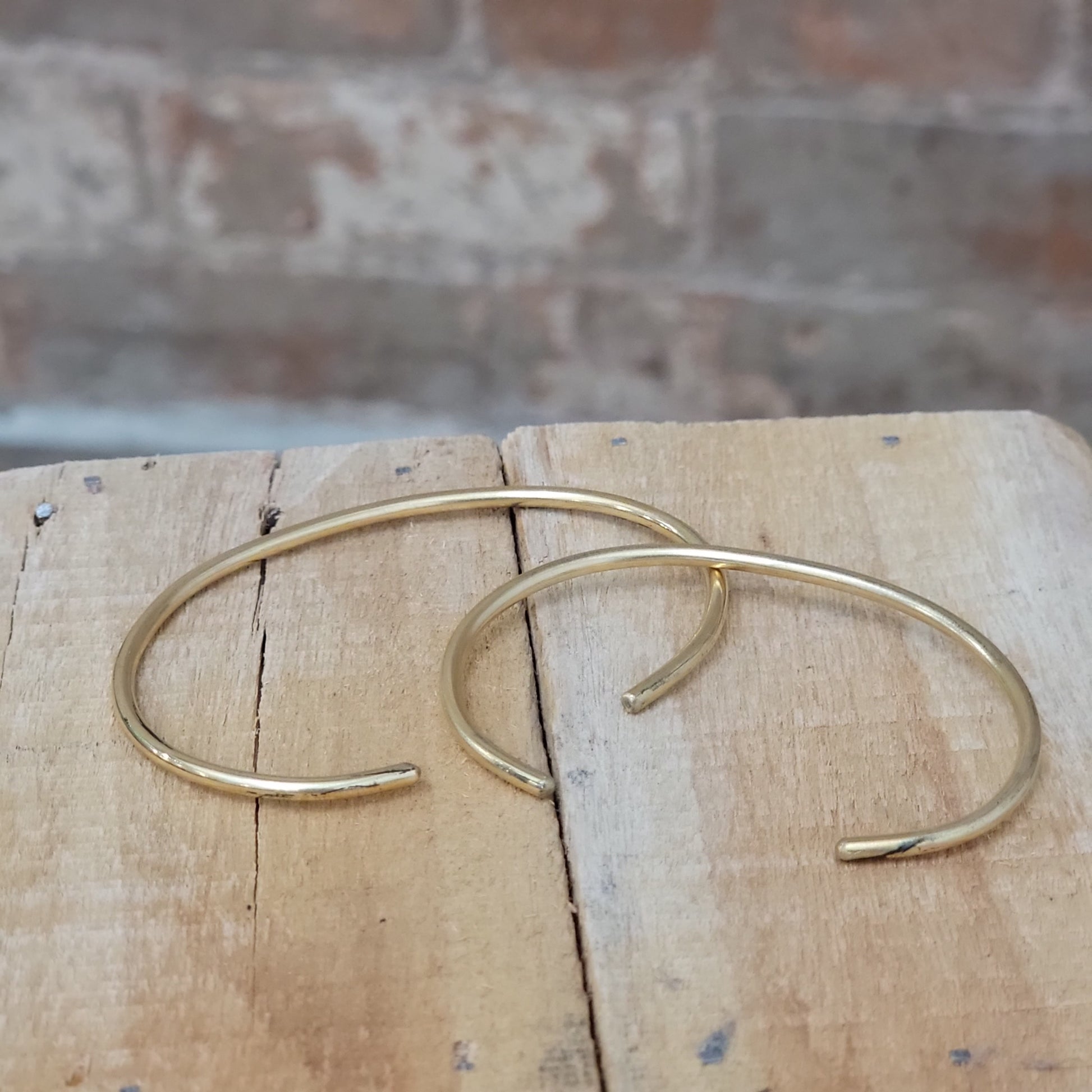 Stackable polished brass cuff bracelet. Option to add a hammered texture. I stack mine and never them them off, even through summer!