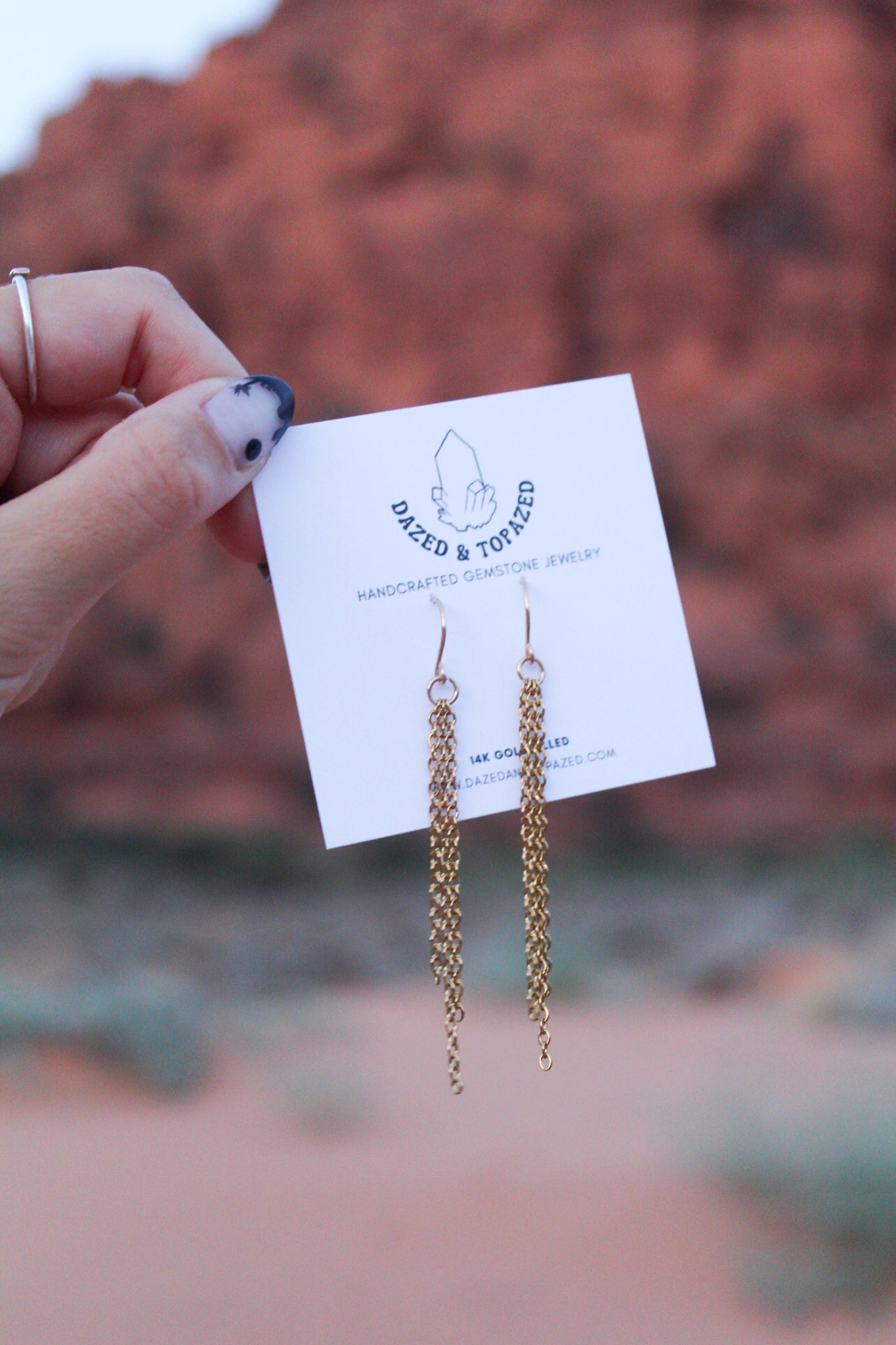 Golden strands that move with you, these lightweight 14k gold fill earrings are minimal, fun, and made to shine every day.