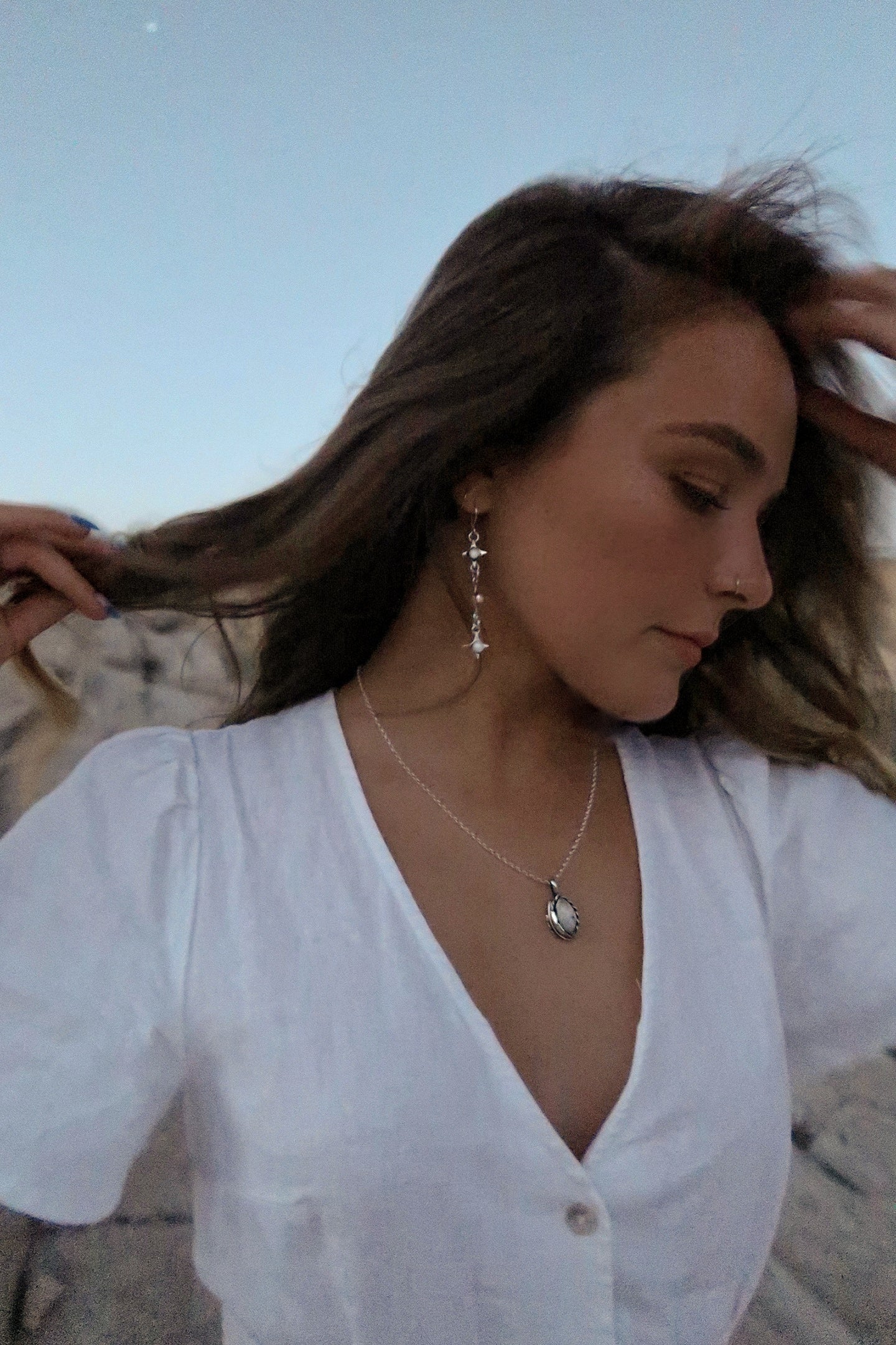 Lightweight and full of movement, they dangle 2.5 inches from the ear, like tiny constellations that shimmer as you move.