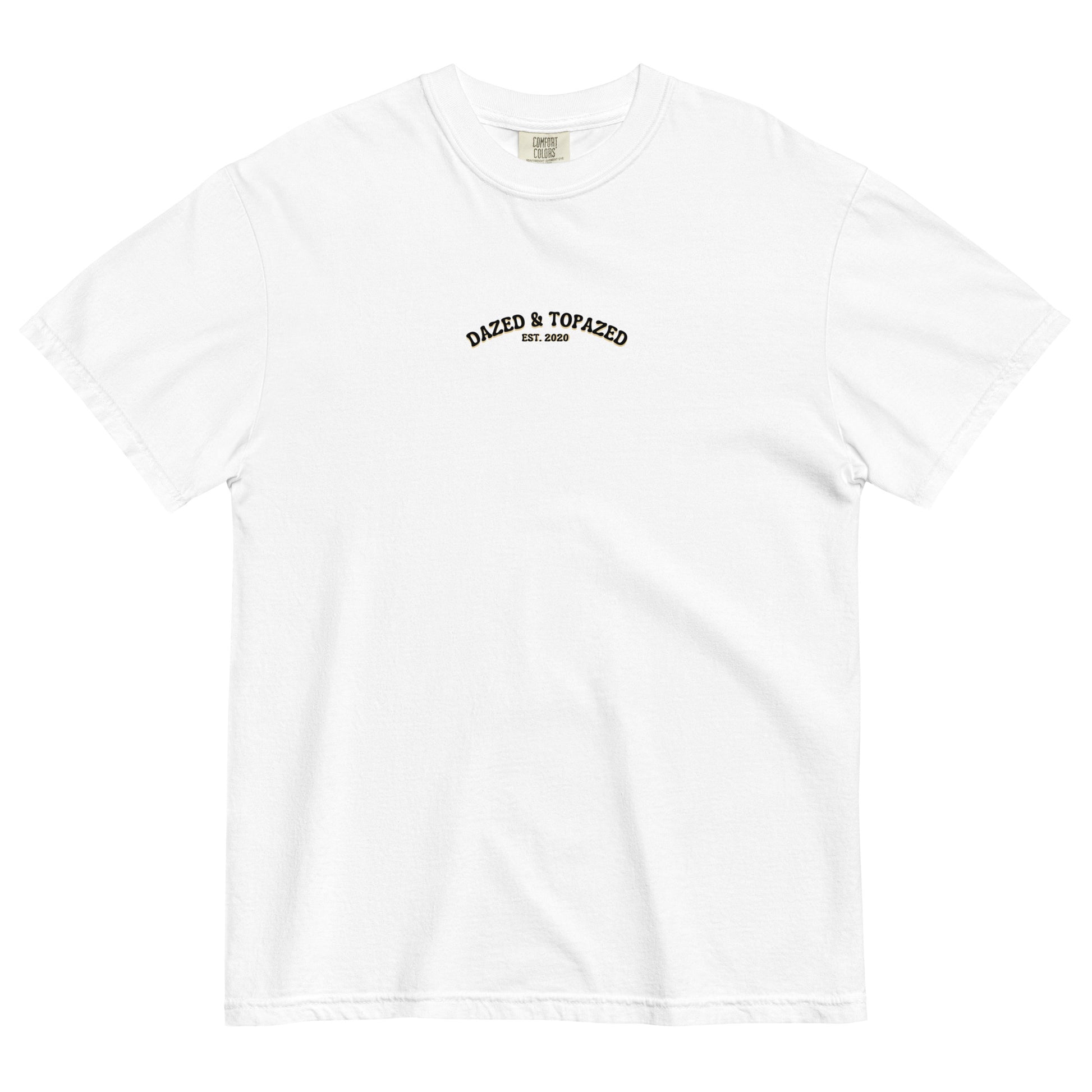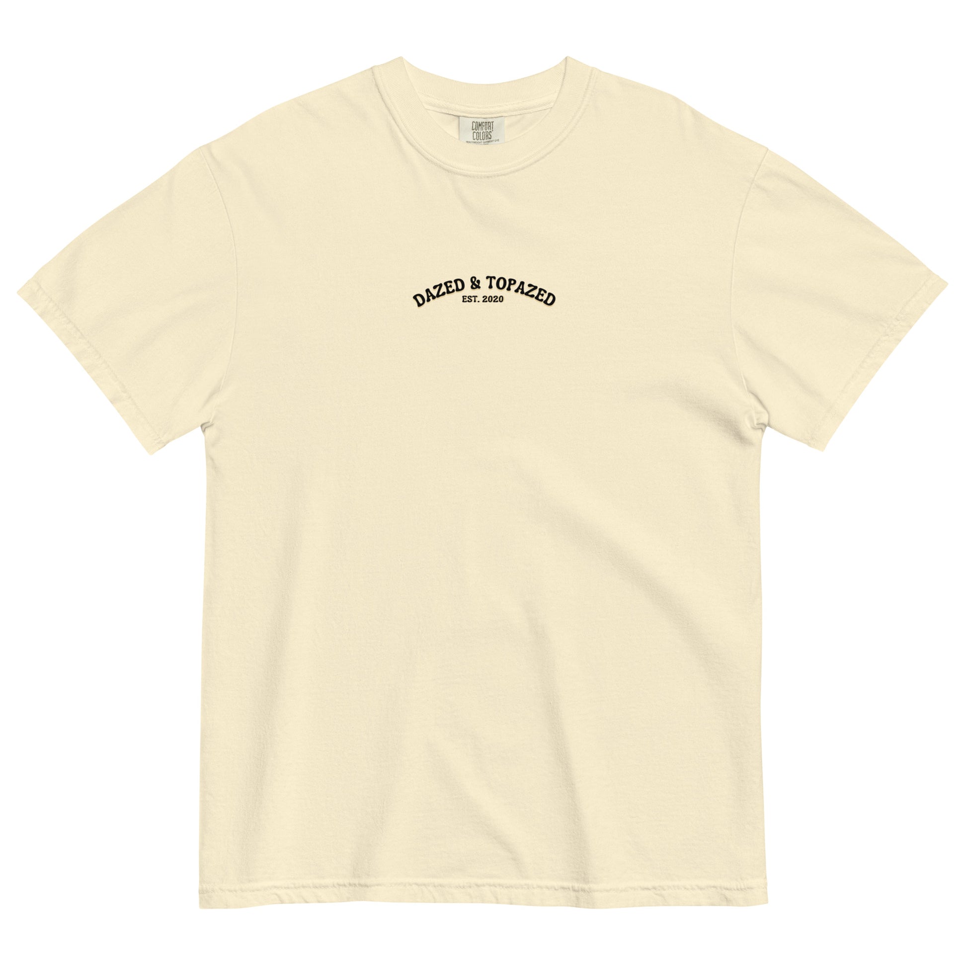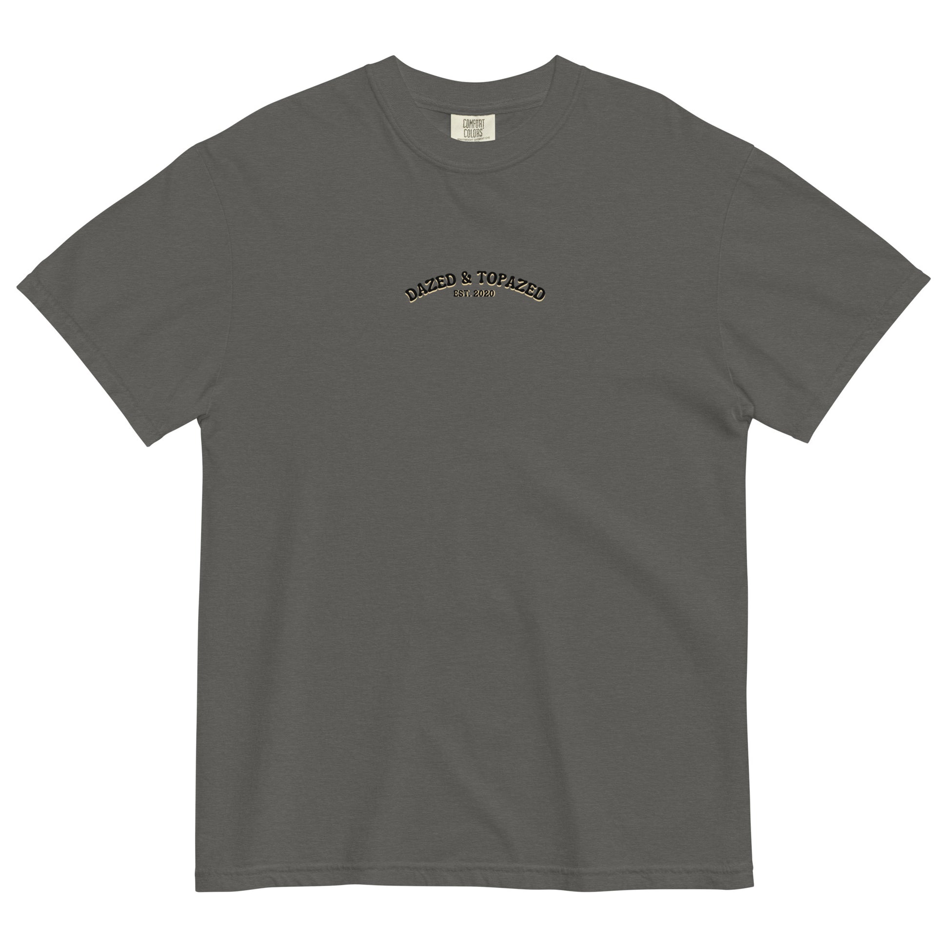 Comfort Colors Brand t shirt featuring the Dazed and Topazed EST 2020 logo.
