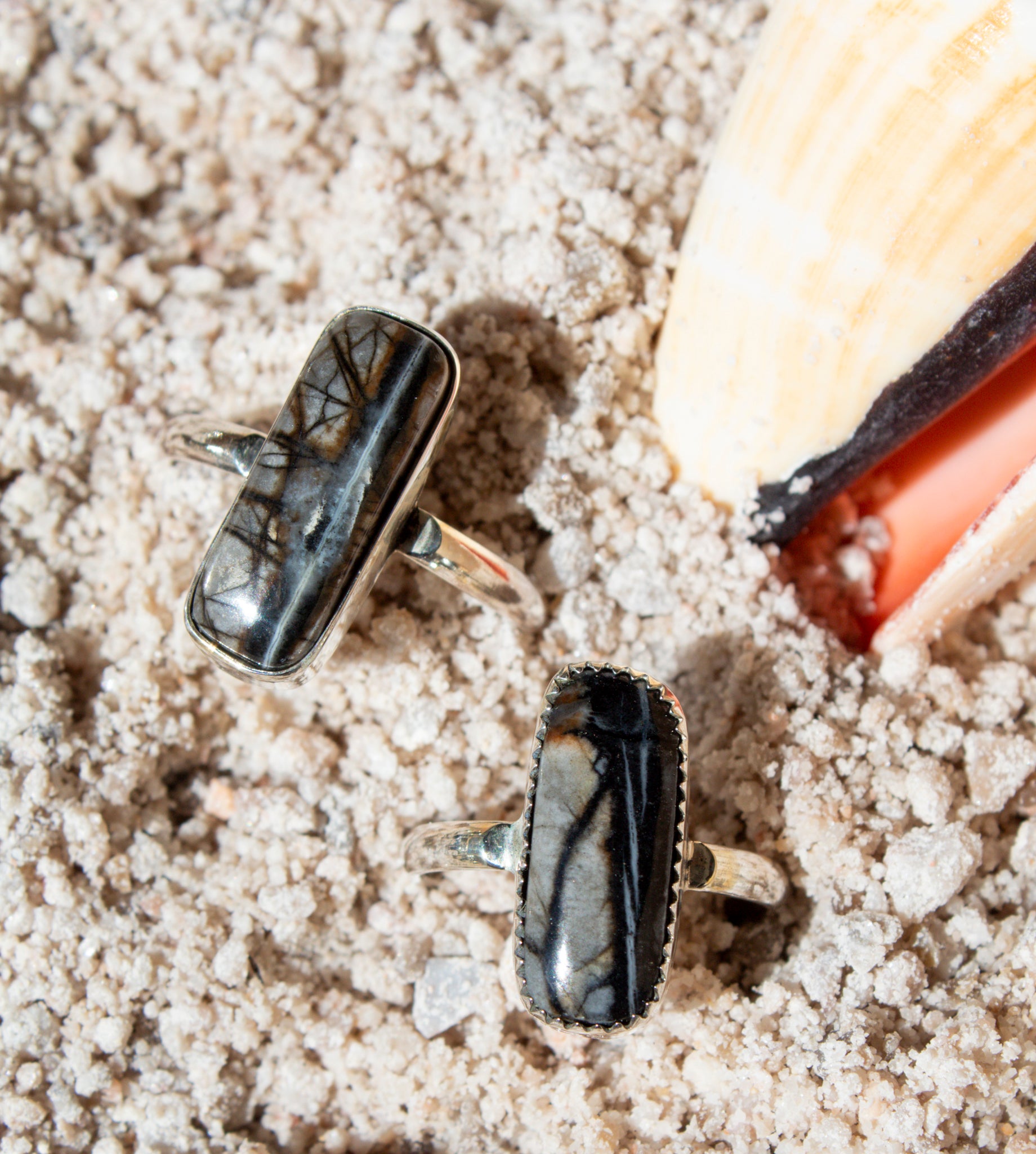 Picasso marble is known for its grounding energy, helping to center the mind and bring a sense of stability through life's shifting tides. Each stone is one of a kind, a small map of contrast and calm.