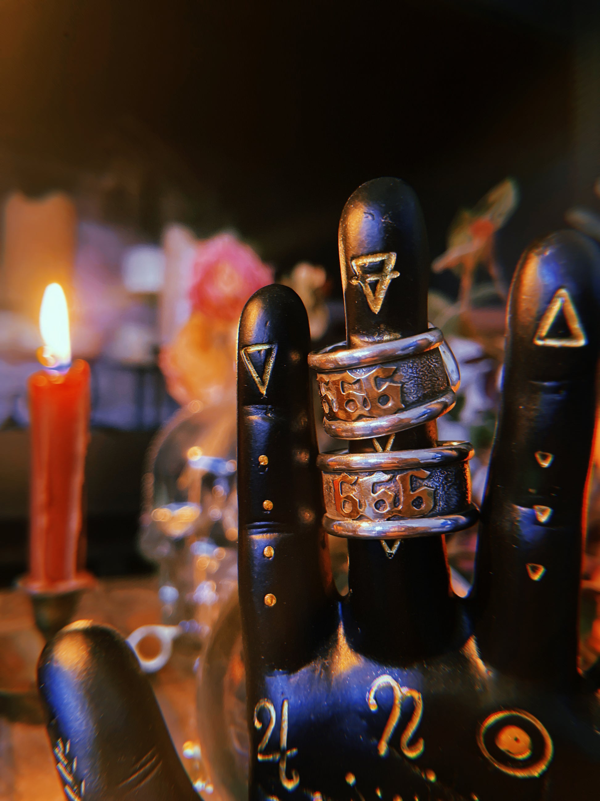 Handmade in sterling silver and marked with rebellion, each features a wide band, hand sawed brass 666- a bold symbol of defiance, transformation, and power reclaimed.